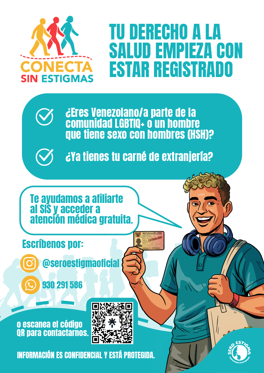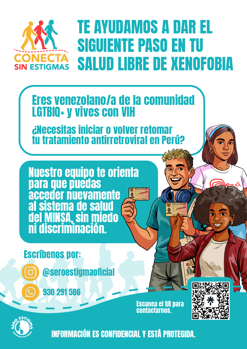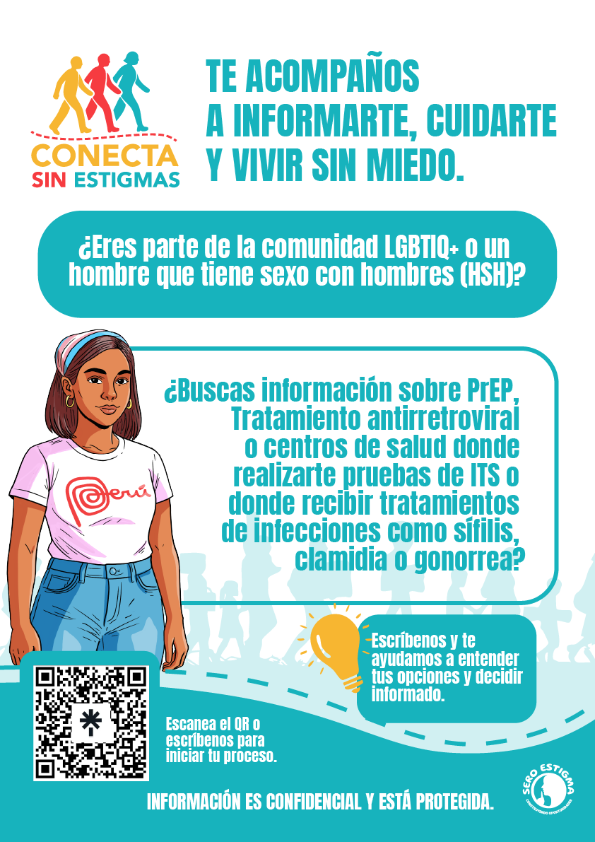 El programa Conecta sin Estigmas, impulsado por la Asociación Civil Un Mundo con Sero Estigma, ofrece acompañamiento humano, gratuito y sin discriminación a personas que viven con VIH, enfrentan barreras para acceder al sistema de salud o buscan información sobre ITS, salud sexual y derechos. Nuestro equipo brinda orientación práctica para gestionar el SIS, acceder a tratamientos del MINSA, mantener la continuidad del tratamiento antirretroviral en procesos de migración y conectar con redes de apoyo comunitario.